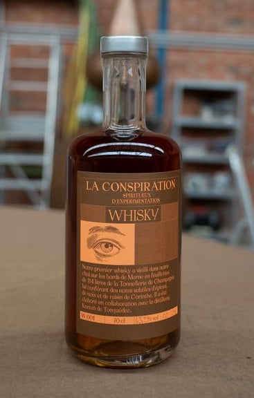 La Conspiration also prepares a whisky made according to the same principles, with aging in barrels from the Tonnellerie Artisanale de Champagne.